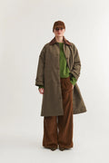 Der Ajlin Coat besteht aus einem hochwertigen Materialmix mit hohem Anteil an recycelten Fasern – inklusive recycelter Wolle und Cashmere. Das Futter sorgt für eine angenehme Wärme, ohne aufzutragen. Raglanärmel bringen Bewegungsfreiheit, der durchgehende Knopfverschluss und die verdeckten Taschen machen das Design clean und funktional zugleich. In „Tarmac“, einem erdigen Olivton, wirkt der Mantel geerdet und doch modern.