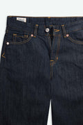 Der dunkle Rinse-Ton unterstreicht den klassischen Charakter: tiefes Indigo, sauber, gepflegt, vielseitig kombinierbar. Eine Waschung ohne Effekte – bewusst reduziert und stilvoll.