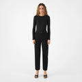 • Hoher Bund mit lockerem und zulaufendem Bein
