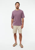 Die Kombination aus Baumwolle und Leinen vereint zwei Naturfasern mit unterschiedlichen Stärken. Baumwolle sorgt für Weichheit und Komfort, während Leinen dem Stoff Struktur und Atmungsaktivität verleiht. Das Ergebnis ist ein langlebiges Material mit natürlicher Oberfläche. Gefertigt wird das Lasse T-Shirt unter fairen Bedingungen in Penafiel, Portugal, wo GIVN Berlin mit spezialisierten Produktionspartnern zusammenarbeitet.