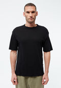 Das Lasse T-Shirt verbindet eine großzügige Silhouette mit einem angenehm natürlichen Materialmix. Der Schnitt ist bewusst weit gehalten, mit leicht überschnittenen Schultern, die an die entspannten Formen der 90er Jahre erinnern. Dadurch entsteht ein T-Shirt, das locker fällt und gleichzeitig eine klare Linie behält.